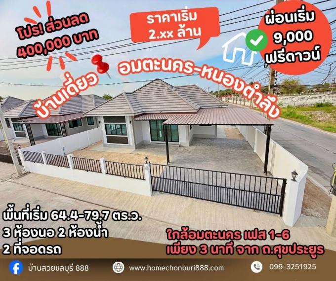 ขายบ้านเดี่ยว 3 ห้องนอน ทำเล หนองตำลึง ซอยเทศบาล 1 ใกล้อมตะนคร ฟรีดาวน์ พื้นที่กว้าง 64 ตร.ว. ขึ้นไป