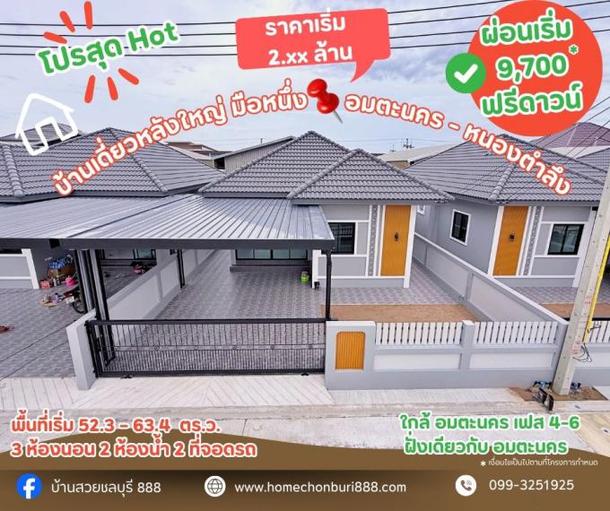 ขายบ้านเดี่ยว หนองกะขะ-พานทอง พื้นที่กว้าง 60 ตารางวา เดินทางสะดวก อยู่ฝั่งเดียวกับ นิคมอมตะนครเฟส 6-10 ฟังก์ชันครบ 3 ห้องนอน 2 ที่จอดรถ ราคา 2.xx ล้าน ฟรีดาวน์
