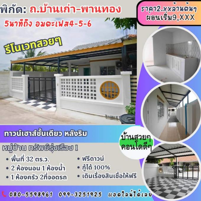 ∆∆ ทาวน์เฮ้าส์รีโนเวท ติดถนนบ้านเก่า-พานทอง ใกล้แมตะเฟส 1-6 ราคา !! ล้านกลางๆ !!
