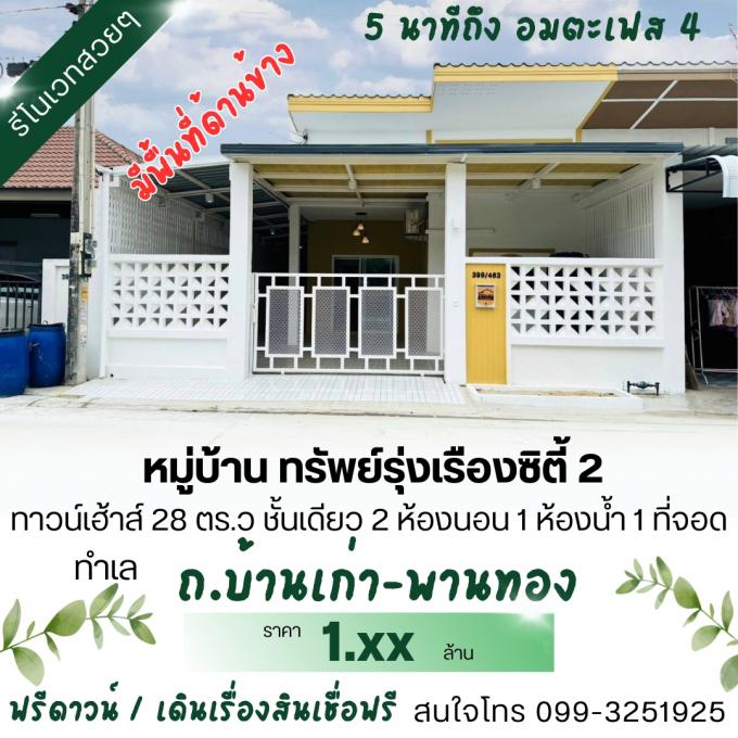 มบ.ทรัพย์รุ่งเรืองซิตี้ 2 ทาวน์เฮ้าส์ 1ชั้นพื้นที่ 21 ตรว. 2 นอน 1 น้ำ